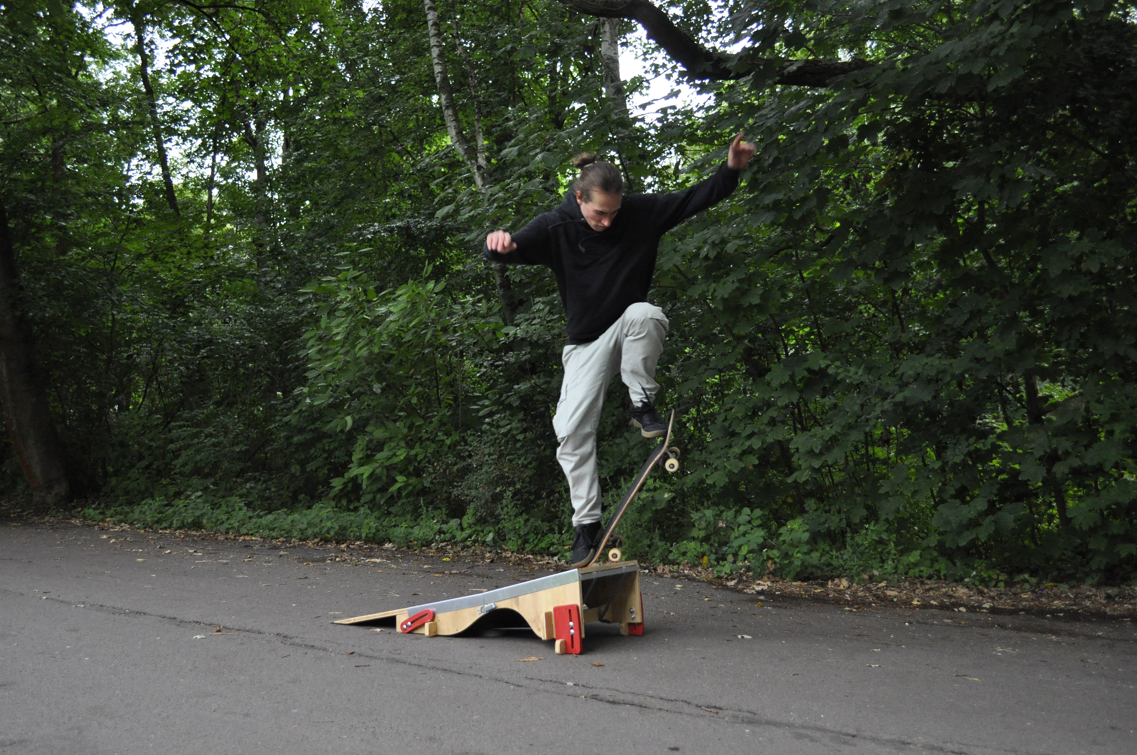 After construction, we sew a backpack for our ramp. The backpack is made out of 100% hemp fabric and some 100% cotton the only part which is made out of plastic is the board strap. This leads me to one of the main criteria for our whole product.
